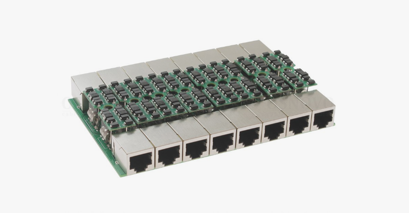 Устройство грозозащиты цепей Ethernet. Дополнительный модуль для 1U устройства грозозащиты для локальной вычислительной сети на 8 портов (скорость до 1000 Мб/с) с защитой линий PoE (af/at, методы A + B, контакты 1/2, 3/6, 4/5, 7/8), двухступенчатая защита, максимальное длительное рабочее напряжение (Uс) DC57В, номинальный ток разряда (8/20 мкс, In) 2.5кA, суммарный ток разряда (8/20 мкс, Itotal) 10кA, время отклика 1нс, 8 входов/выходов RJ45, установка в устройства грозозащиты OSNOVO SP-IP8/1000PR и SP-IP16/1000PR, -40…+80°C, 134х20х90мм.