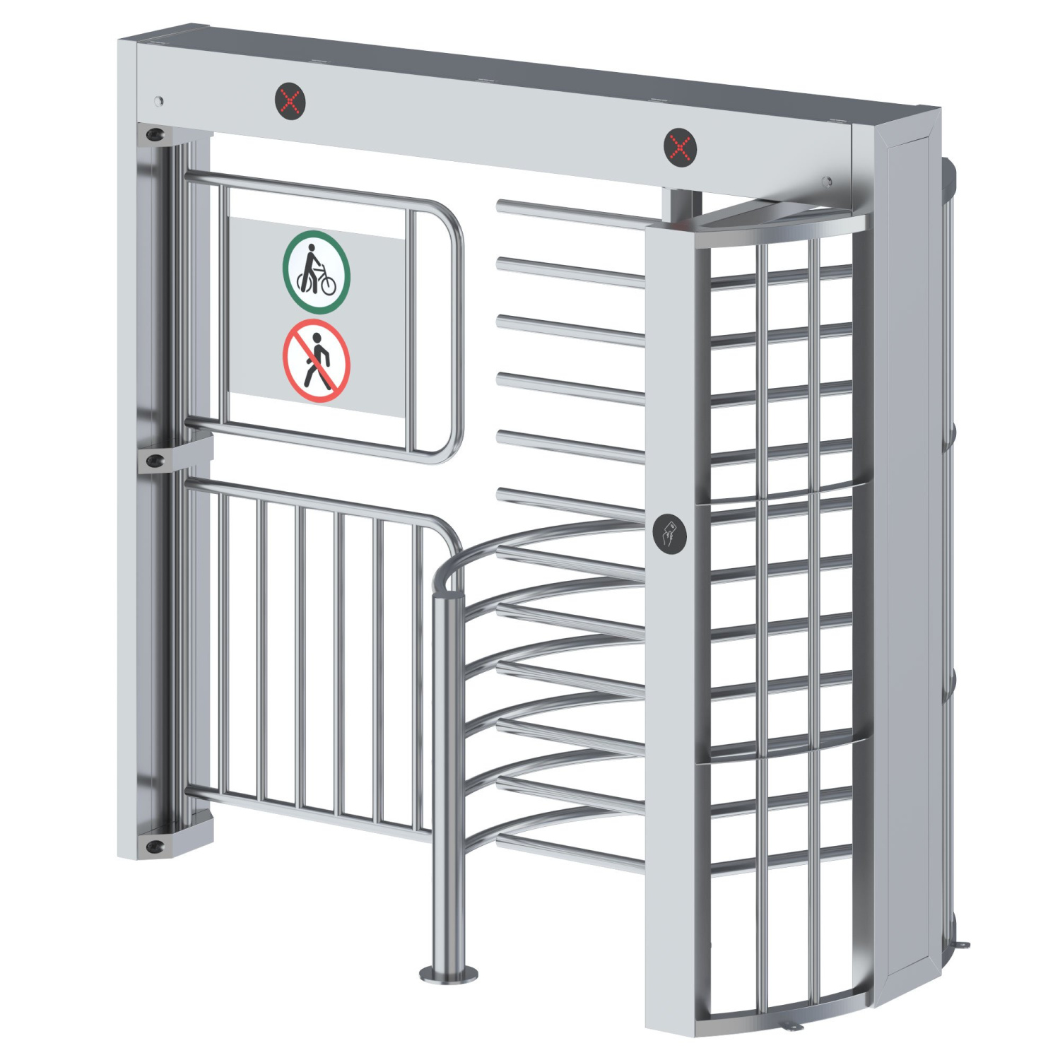 Турникет электромеханический полноростовый. Турникет полноростовой БЛОКПОСТ СТ 3 серия СПЕКТР Z, роторный, ширина прохода 600мм, с калитками - 1000мм, встроенные считыватели Mifare, всепогодное исполнение, "сухие контакты на плате управления", пропускная способность 30-35 чел/мин, 100-240 В, 50 Гц, IP54, -40 - +55°C. ПДУ и ИК-пульт в комплекте. Материал корпуса - нержавеющая сталь AISI 304, габариты прохода 2100х600 мм, нижняя часть калитки 1200х1000, с двумя открытыми калитками 2100х1000, внешние габариты 1304х2520х2334 мм.