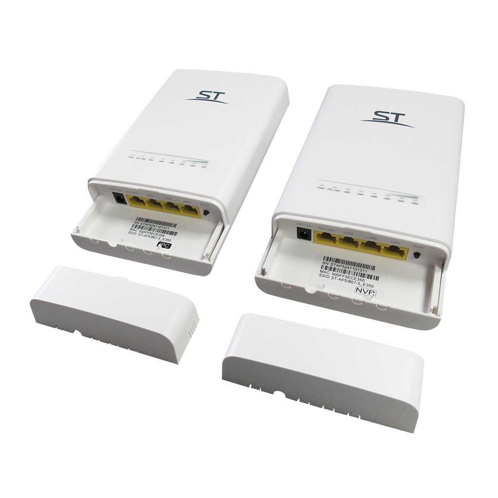Точка доступа. Точка доступа Wi-Fi до 867 Мбит/с на 5 ГГц, 802.11 a/n/ac; 1xRJ-45 WAN 10/100 Мбит/с, 3xRJ-45 LAN 10/100 Мбит/с; до 5000 м; антенна 12dBi; комплект из 2х шт; DC 12 В/Passive PoE, 1A; -30…+60°C; 132х72х46 мм