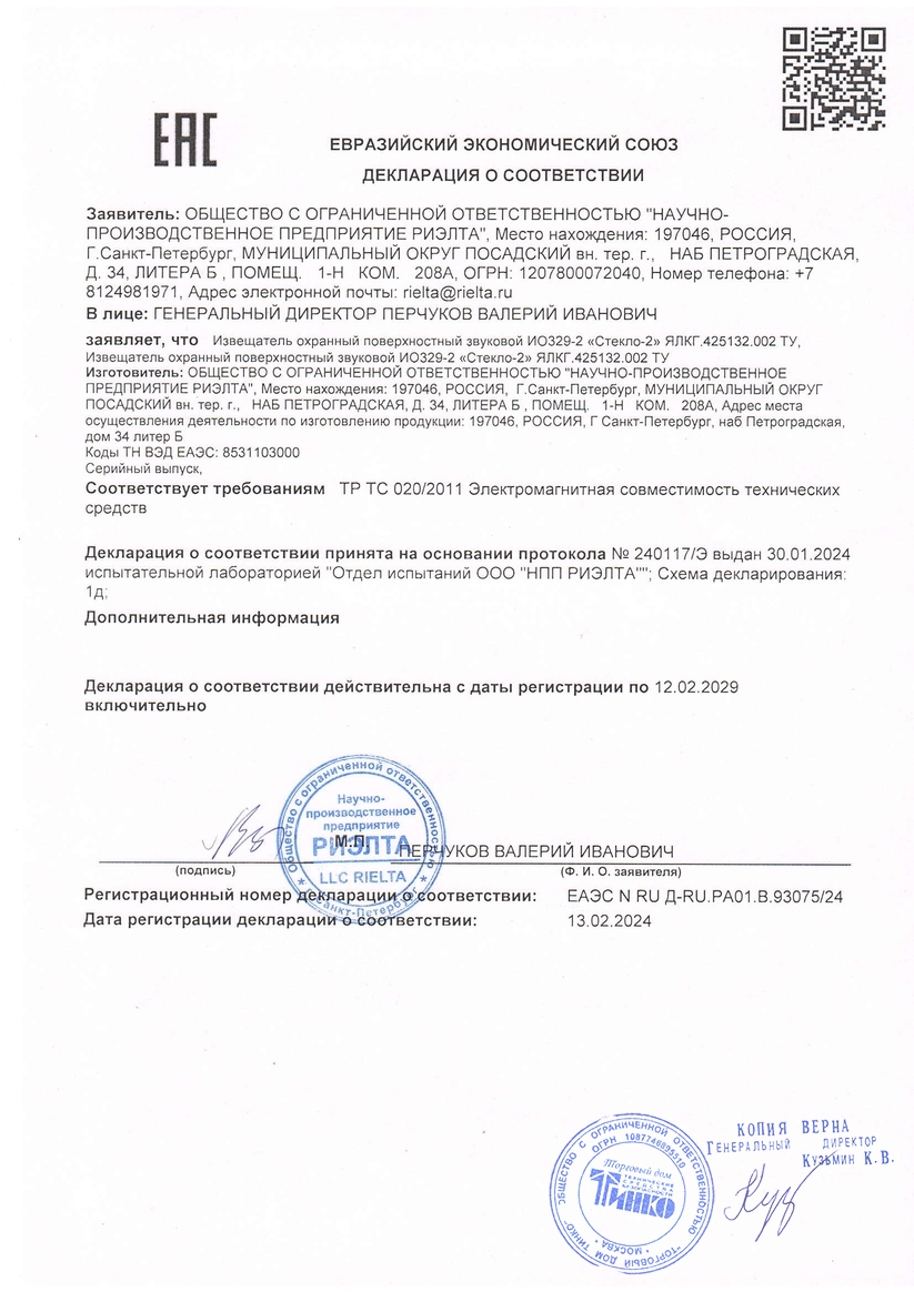 Питание извещателя осуществляется от шлейфа охранной сигнализации.