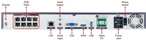 Видеорегистратор IP. Видеорегистратор IP 8-ми канальный с PoE; 1хVGA до 1080Р, 1хHDMI до 4К; битрейт вход/выход- 56/56 Мбит/с; разрешение записи до 12Мп 25 к/с; H.265+/H.265/H.264+/H.264/MJPEG; 2 SATA для HDD до 16Тб; тревожные вход/выход- 8/1, аудиовход/выход -1/1; 1хRJ45 10/100/1000 Мбит/с; 2хUSB; ONVIF, 8хRJ45 10/100/1000 Мбит/с PоE бюджет 128 Вт; видеоаналитика: распознавание лиц (сравнение лиц в кадре с базой данных в реальном времени); захват и обработка номерных знаков транспортных средств (сравнение номеров с базой данных); мониторинг и отображение температуры объектов в режиме реального времени при работе с тепловизорами; определение фигуры человека, немоторных ТС и др., АC 110-220 В; 15Вт(без HDD); -10°C...+50°C; 372х46.5х310.5 мм.