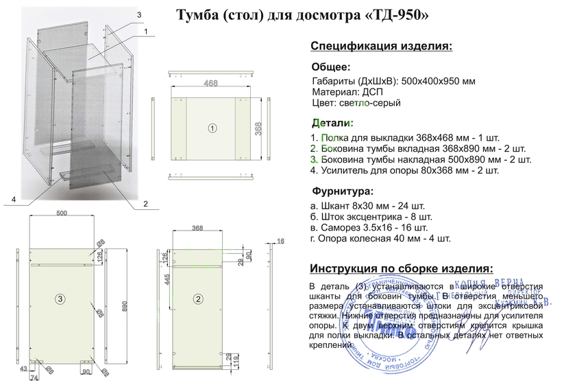 Стол досмотровый 500х400х950 мм (белый)