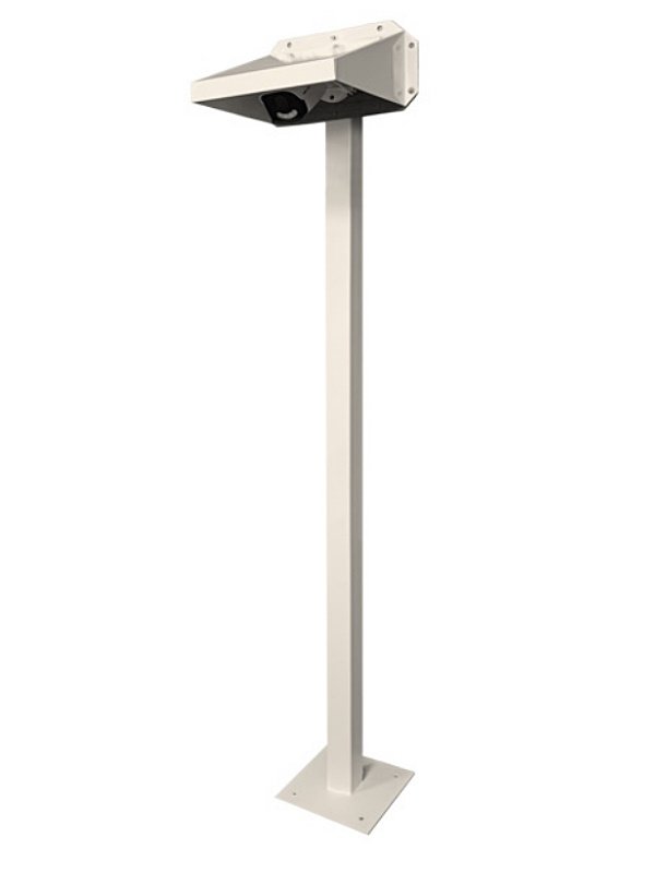 Стойка для видеокамер. Стойка для монтажа видеокамер. Защитный козырек от атмосферных осадков и засветки, основание для крепежа. Высота 2300 мм, труба 60х60 мм, цвет белый.