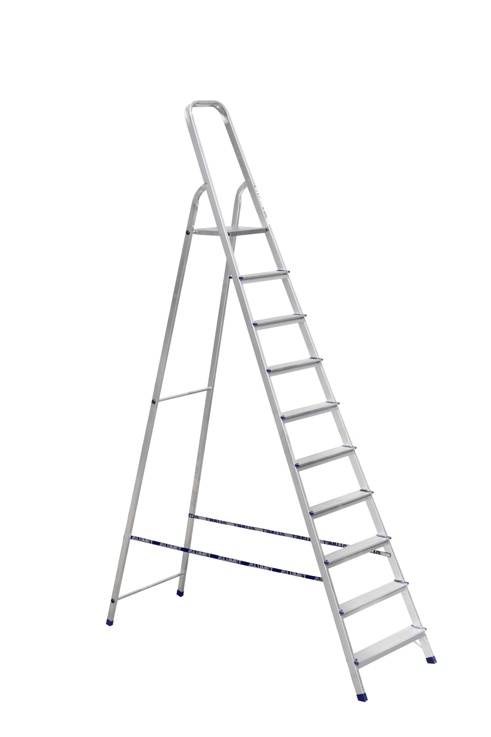 Лестница. Стремянка, количество ступеней 10, высота площадки 208 см, рабочая высота 410 см, до 150 кг, вес 7.6 кг