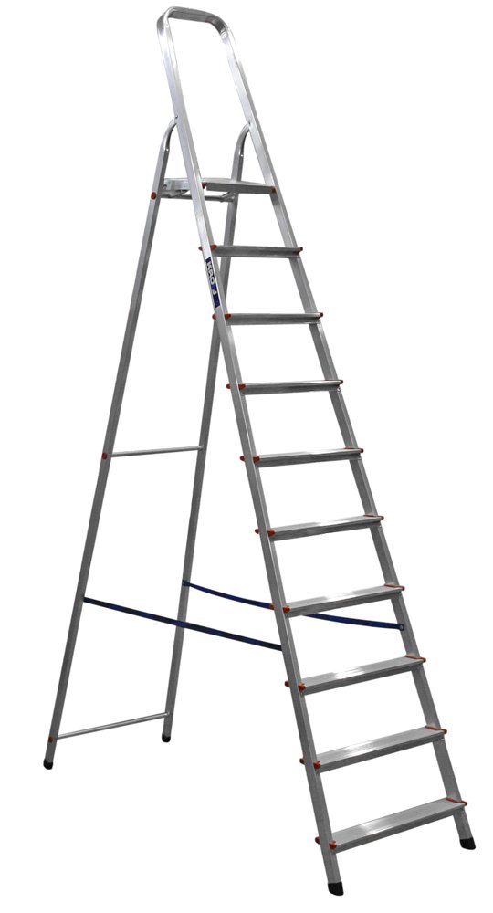 Лестница. Количество ступеней 8, высота площадки 1,66 м, высота с поручнем 2.44 м, рабочая высота 3.7 м, ширина основания 0,54 м, вес 6.0 кг.
