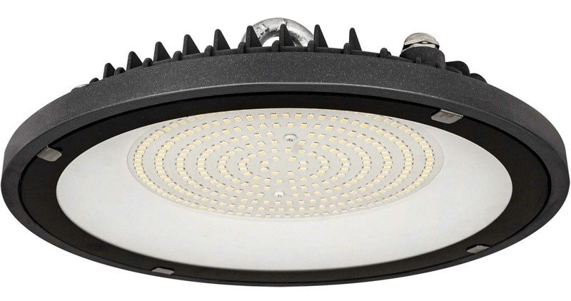 Светильник светодиодный. Светильник светодиодный подвесной, мощность 150 Вт, световой поток 15000 Лм, цветовая температура 6500 K, U-вх. 230 В, IP65, t-раб.-40...+50°C, габ.размеры Ø272х100 мм, цвет серый