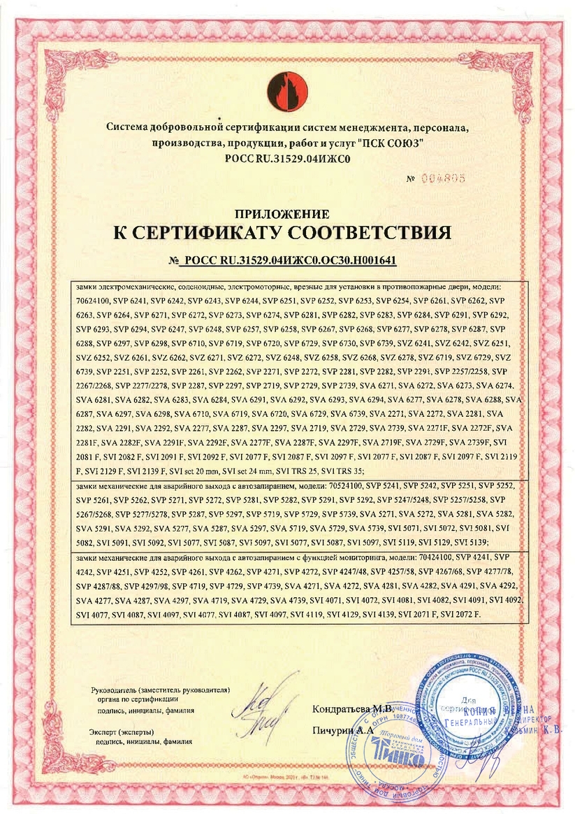 SVP 4000Механический замок для аварийного выхода со встроенными датчиками для контроля положения защелок, цилиндров, ручек и ригелей.SVP 6000Электромеханический замок для аварийного выхода с раздельным штоком для электрически подключаемой наружной ручки и детекторами с защитой от воздействий.SVZ 6000Электромеханический замок для контроля доступа, как и в серии SVP 6000, но без функции аварийного выхода (электрически подключаемы обе ручки)