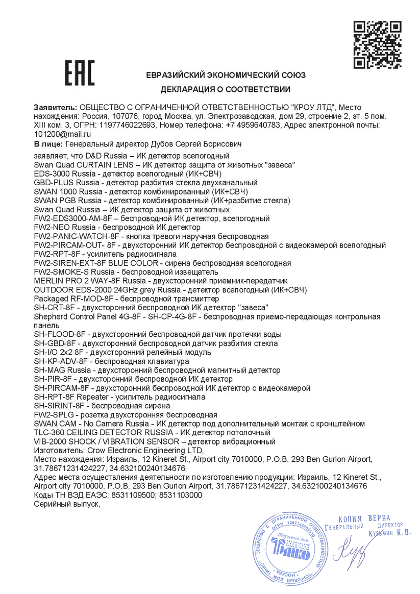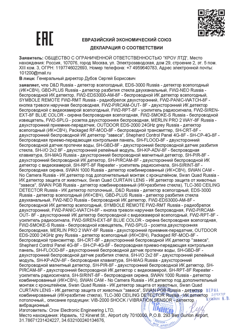 Извещатель охранный предназначен для обнаружения проникновения в охраняемое пространство закрытого помещения и формирования извещения о тревоге путем размыкания выходных контактов сигнального реле.