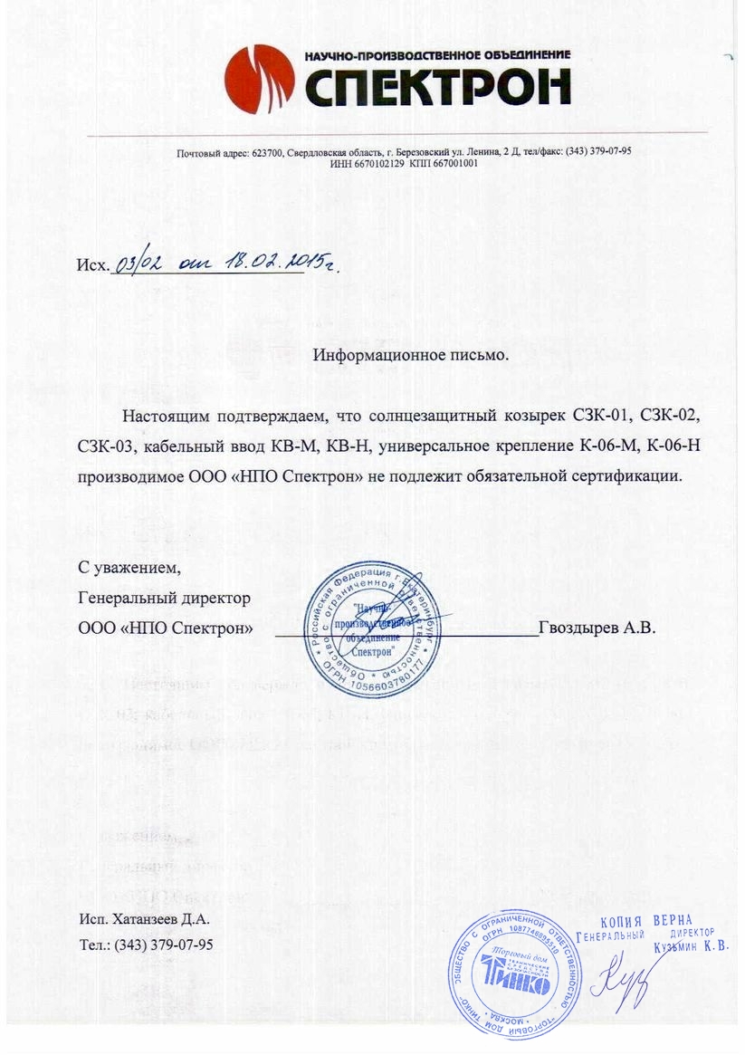 Козырек солнцезащитный. Солнцезащитный козырек для: ИПП Спектрон-401‑Exd-М/Н; ИПП Спектрон-601‑Exd-М/Н.