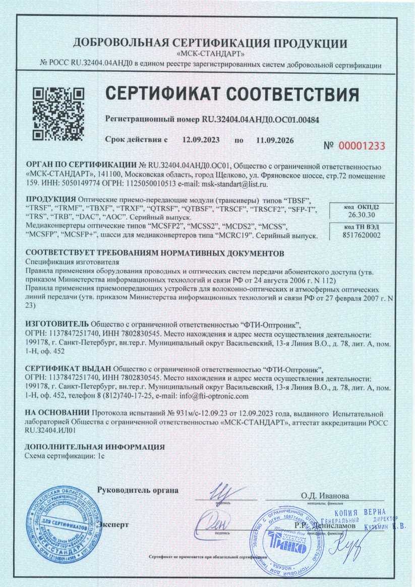 SFP-модуль. SFP-Модуль RG-45 индустриальный; 1000Base-T (1.25Gb/s); Питание 3.3В; -40 ...+85 С. Возможность горячей замены.