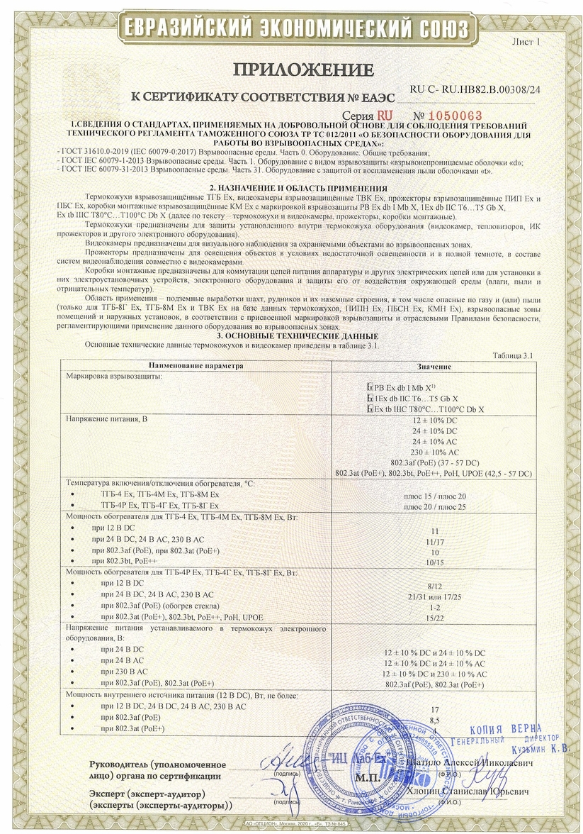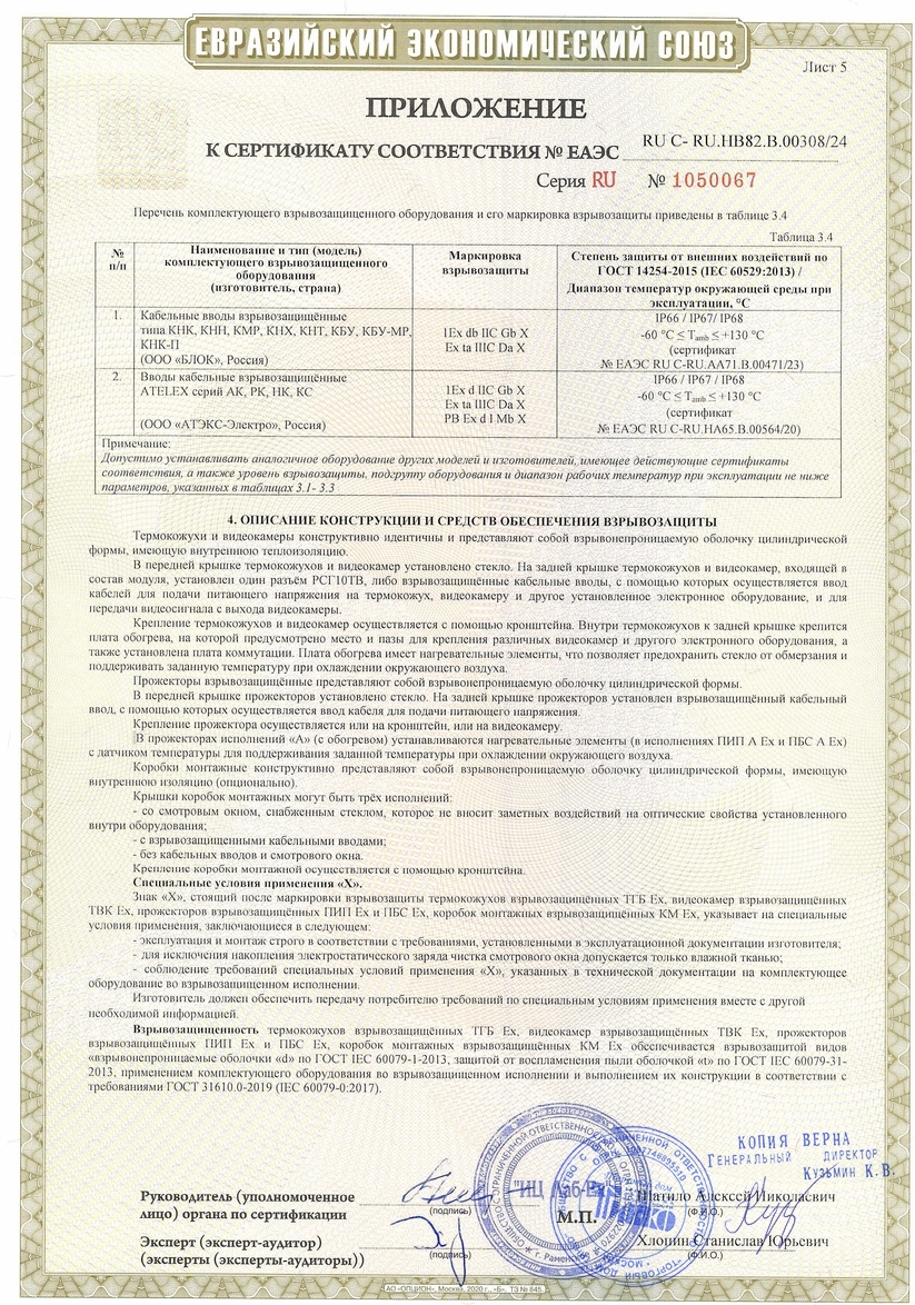 Термокожух для видеокамеры взрывозащищенный. Термокожух взрывозащищенный для видеокамеры из нержавеющей кислотостойкой аустенитной стали; класс взрывозащиты РВ Ех db I Mb X / 1Ех db IIC Т6 Gb Х / Ех tb IIIC Т80°C Db Х; класс защиты IP66/IP68; полезный объем 70х70х215 мм; питание термокожуха по стандарту IEEE 802.3at (PoE+)/видеокамеры по стандарту IEEE 802.3af (PoE); мощность обогрева 25 Вт; -60°С…+50°C; холодный пуск; гермоввод под не бронированный кабель диаметром 3,2-8,1мм с фиксатором металлорукава. В комплекте настенный кронштейн и солнцезащитный козырек.