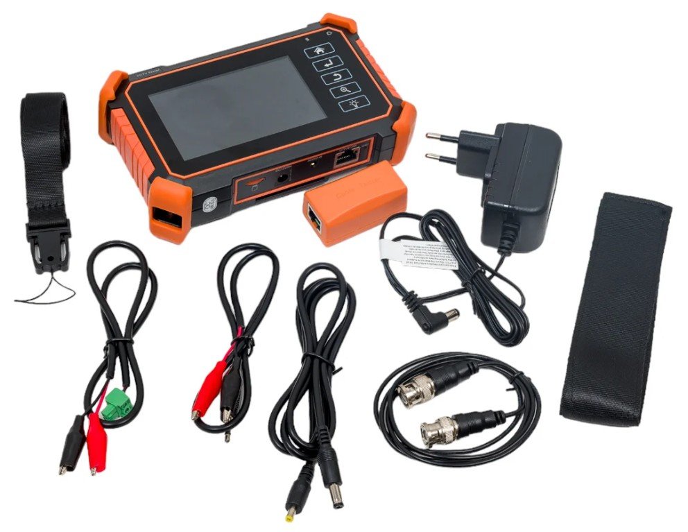 Многофункциональный тестовый видеомонитор для аналогового и IP видеонаблюдения. Универсальный 4-дюймовый сенсорный монитор-тестер AHD/CVI/TVI/CVBS и IP-видеосистем. Разрешение экрана - 800x480. Операционная система Android. Поддерживаемые стандарты: ONVIF, 8Mp TVI, 8Mp CVI, 8Mp AHD, RS485 PTZ, IEEE 802.11b/g/n, RTSP, IEEE 802.3af/at. Разъемы: 2хRJ45, 1xBNC, клеммы(RS485), jack 3,5мм вход, разъемы DC (12В/3A выход, 12В вход), слот MicroSD. Батарея Li-Pol 7.4 В 2600 мАч, -10°С... 50°С, 160x100x45 мм.