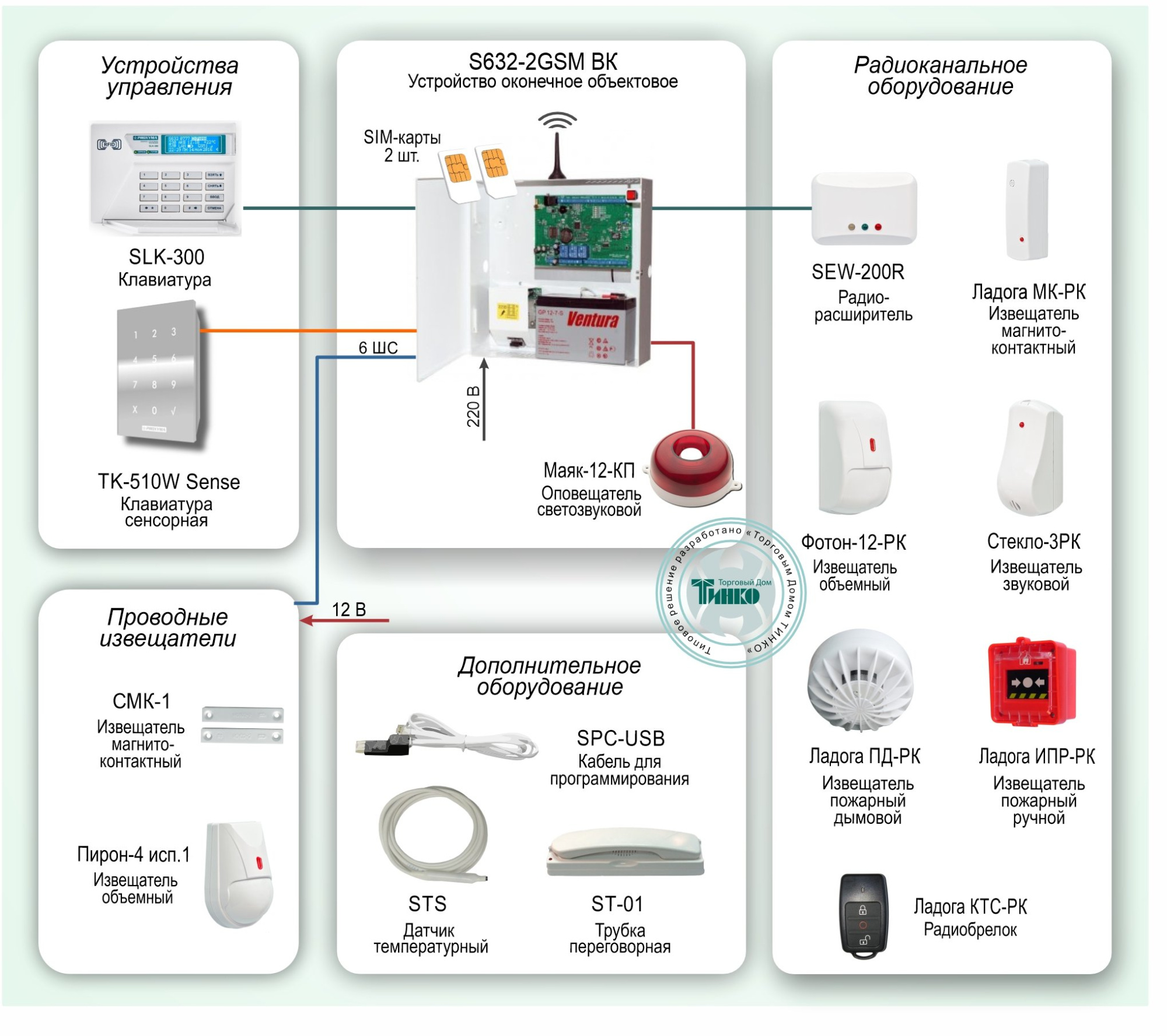 Схема построения системы охраны на основе УОО S632-2GSM-ВК