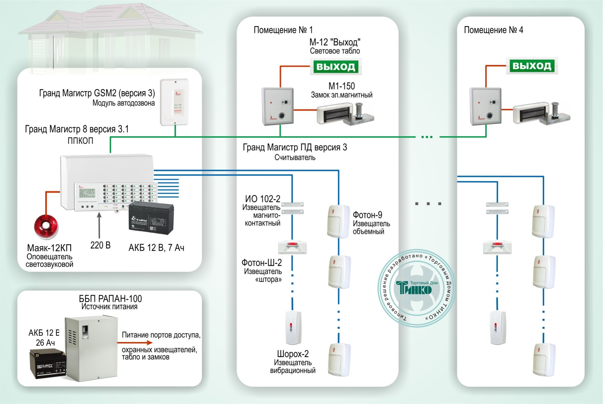 Предлагаемое типовое решение основано на построении системы охранной сигнализации на базе приемно-контрольного прибора «Гранд Магистр 8 версия 3.1» производства ООО «Магистраль».