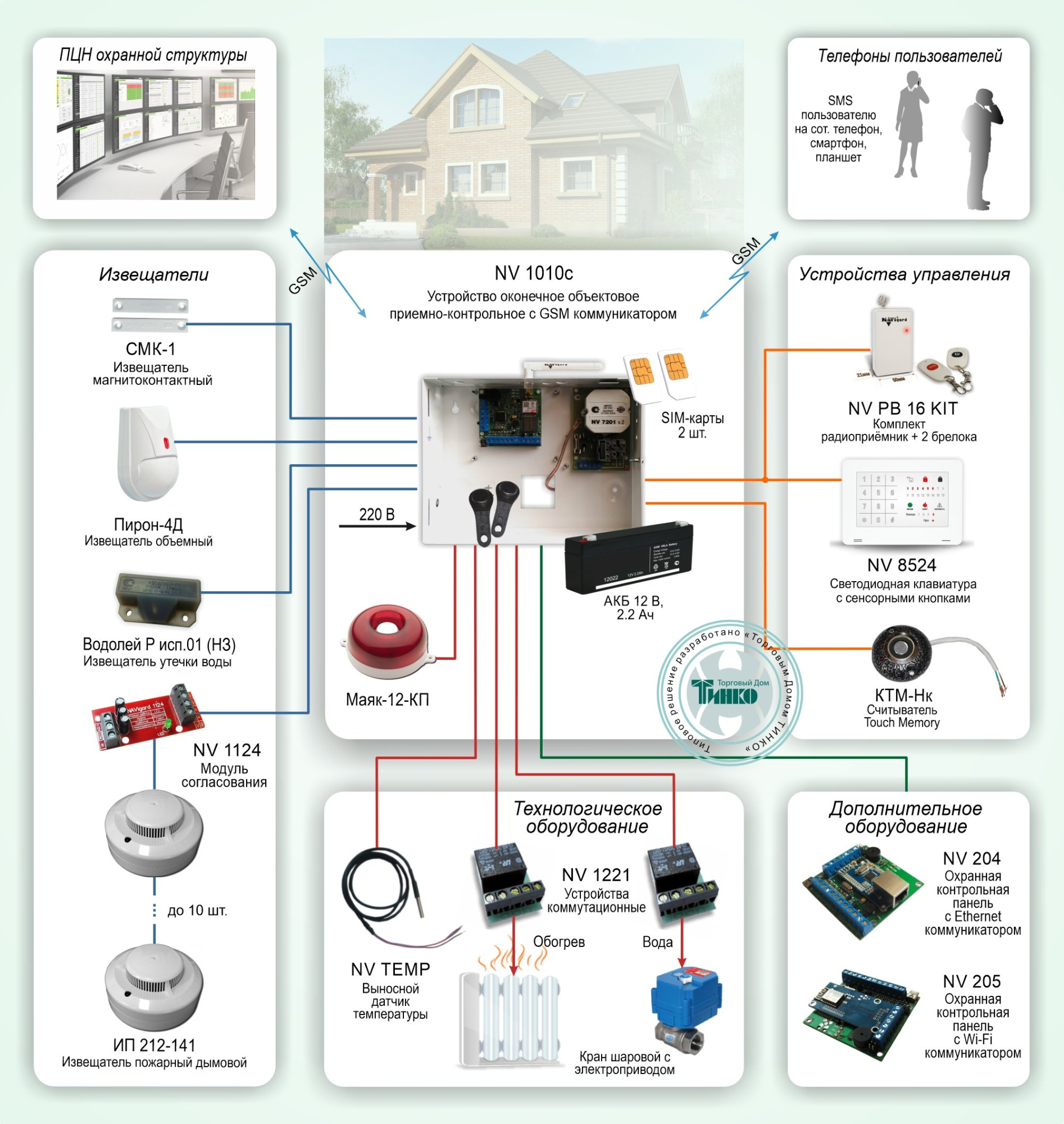 Система защиты объекта с оповещением по GSM каналу на базе комплекта NV 1010c