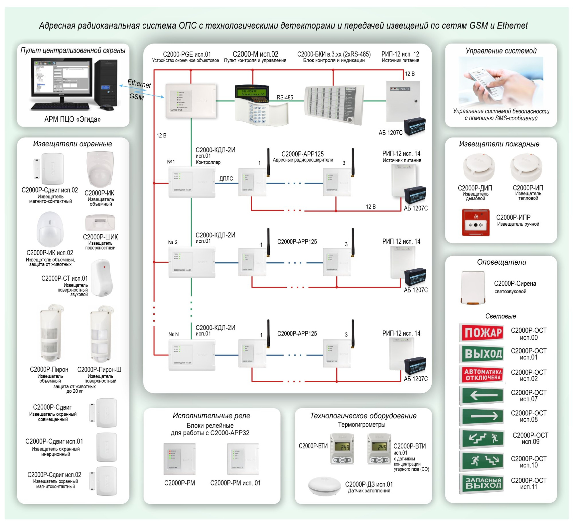 Типовое решение для больших и распределенных объектов основано на построении беспроводной объектовой системы ОПС (далее – система) с передачей извещений: