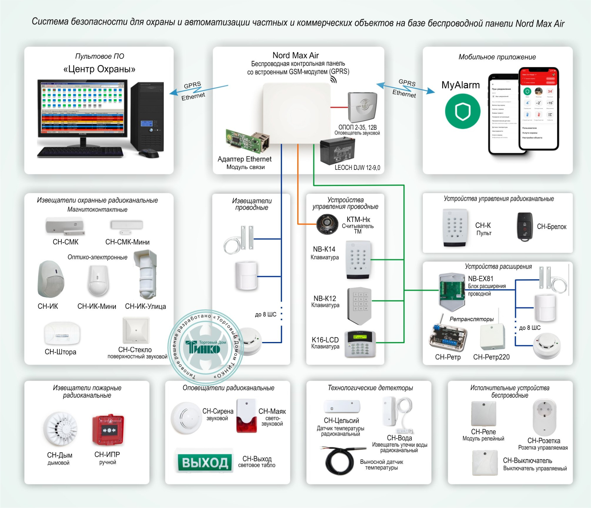 Схема построения системы защиты объекта на базе беспроводной панели Nord Max Air