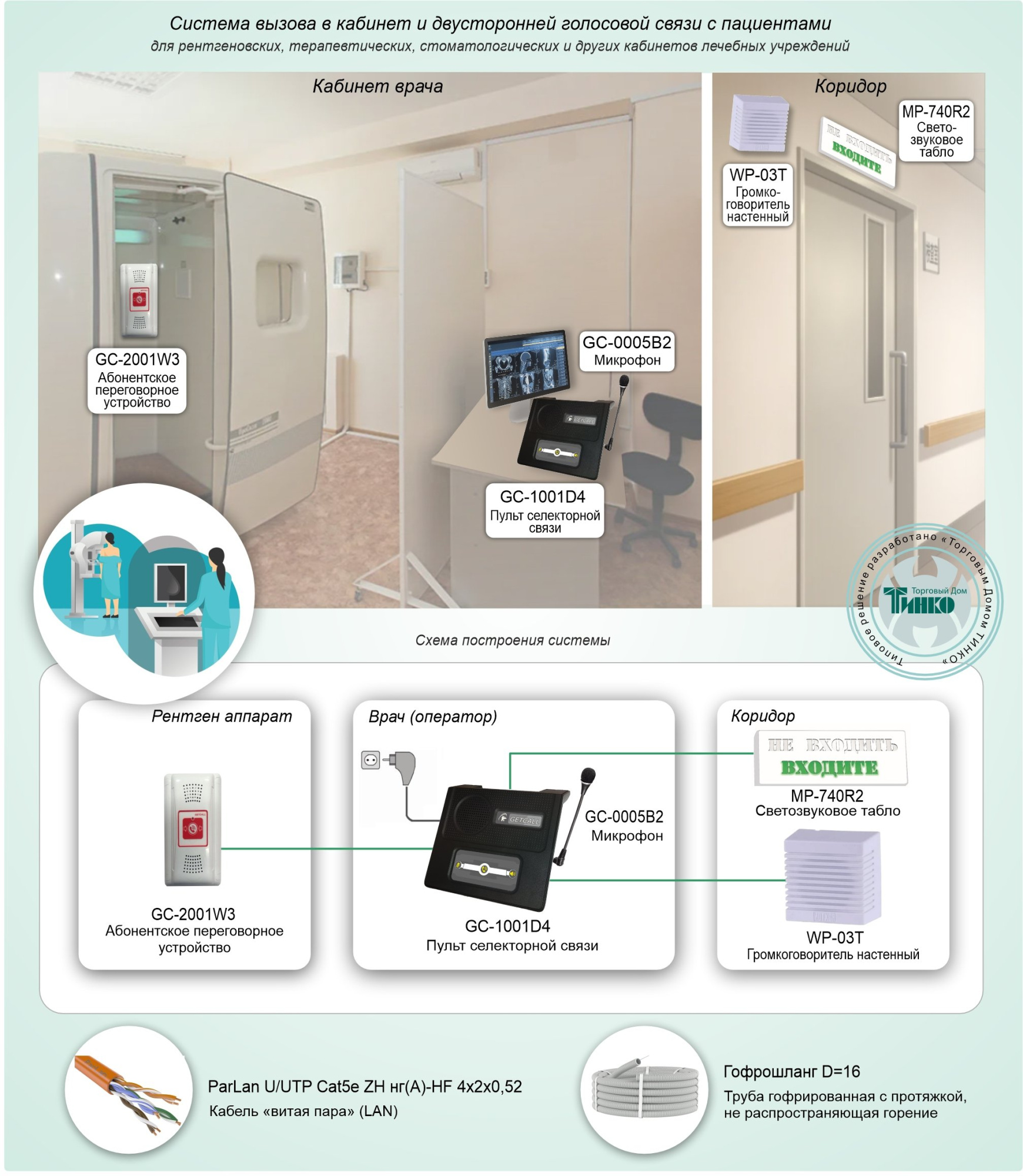 - пульт селекторной связи GC-1001D4; устанавливается в кабинете врача;