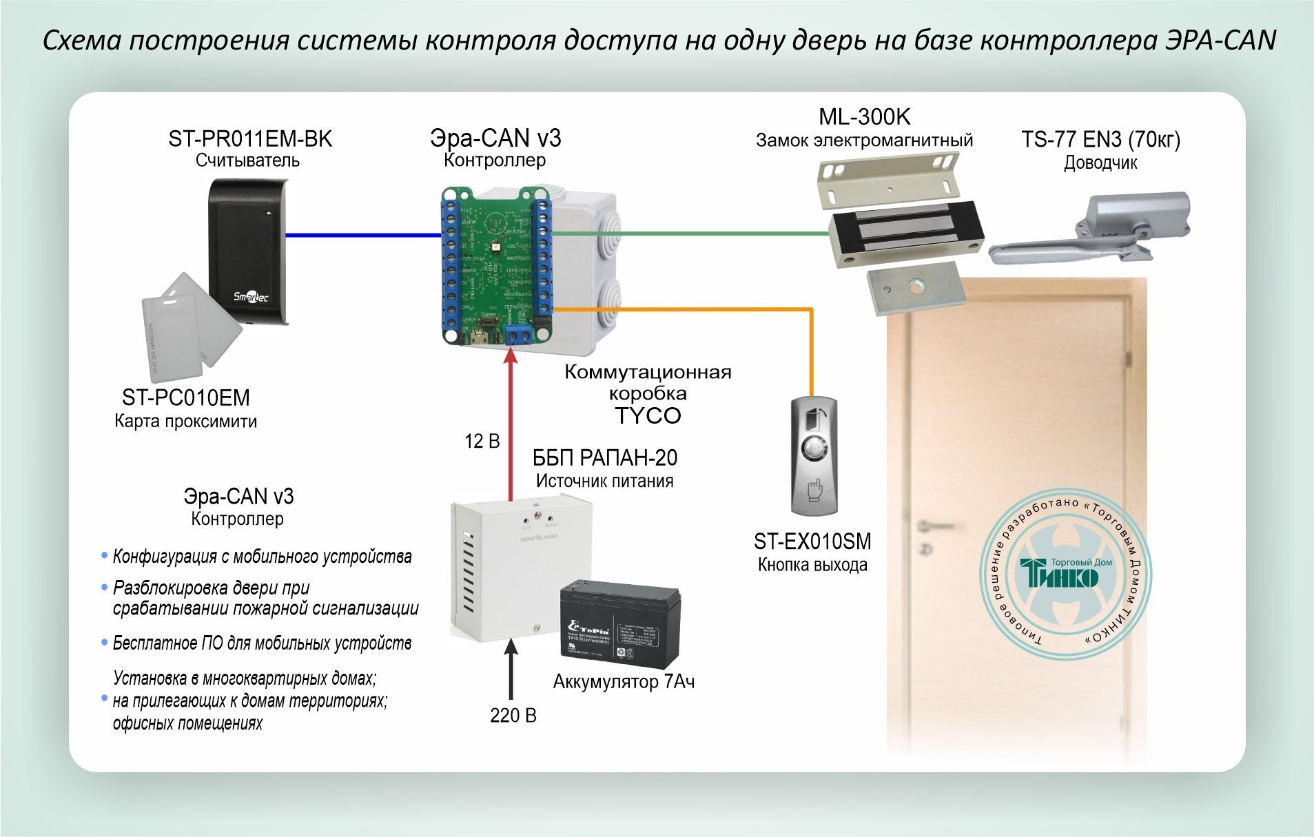Схема построения системы контроля доступа на одну дверь