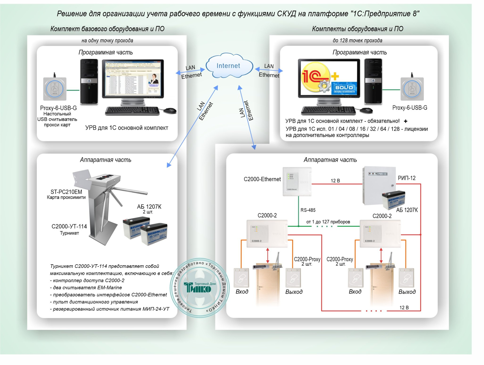 Схема построения системы учета рабочего времени с функциями СКУД на платформе "1С:Предприятие 8"