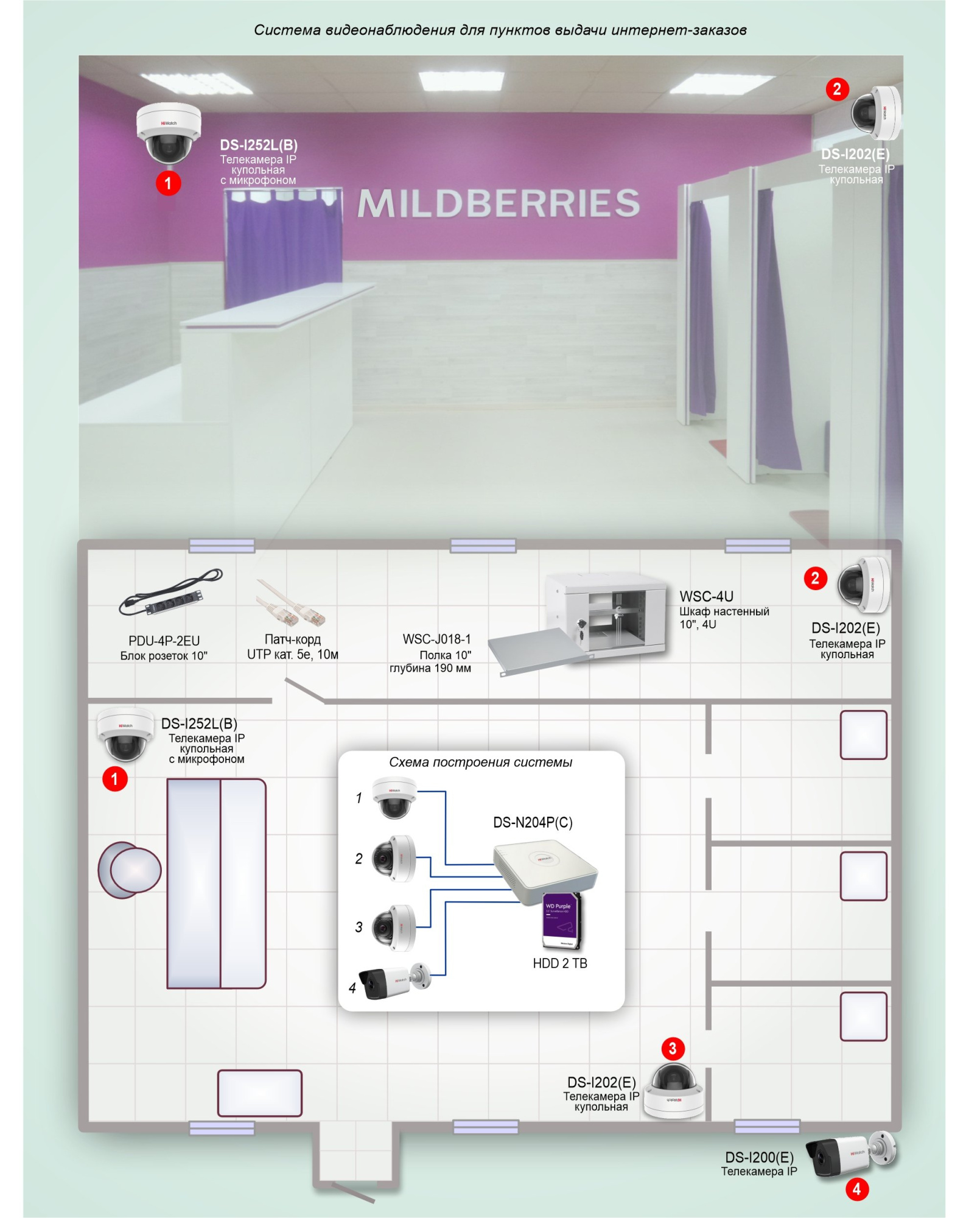 Типовое решение организации системы видеоконтроля в пунктах выдачи интернет-заказов реализовано на оборудовании HiWatch и предназначено для: