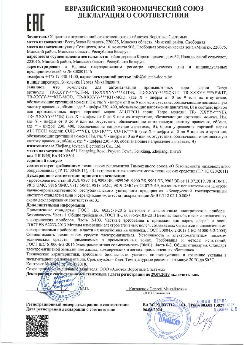 Электромеханический привод вального типа TR-5024-400 предназначен для автоматизации сбалансированных секционных промышленных ворот. Применим с внешним блоком управления.