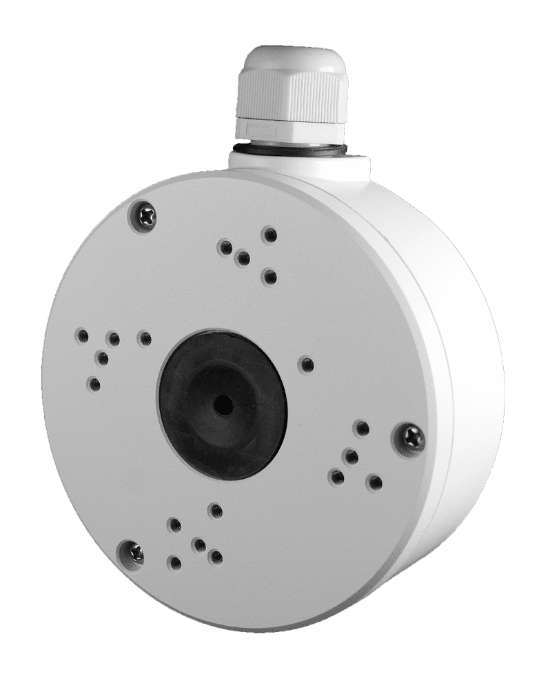Коробка монтажная для камер видеонаблюдения. Монтажная коробка для камер ; Совместима с камерами: TR-D2121IR3 v4, TR-D2141IR3, TR-D2142ZIR3, TR-D2181IR3, TR-D2122ZIR3, TR-D2221WDIR4, TR-D2222WDZIR4, TR-D2121IR3W v2, TR-D2123IR6 v4, TR-D2143IR6, TR-D2183IR6, TR-D2223WDIR7, TR-D2223WDZIR7, TR-D2224WDZIR7, TR-D2S5, TR-D2S5-noPoE, TR-D8121IR2 v4, TR-D8141IR2, TR-D8221WDIR3, TR-D3121IR1 v4.; Ø112.5×45.5 мм; –40 °… +60 °C.; Алюминиевый сплав; Предусмотрен вывод расположенных внутри кабелей через борт и основание. В комплект включено водонепроницаемое уплотнительное кольцо — для защиты от влаги. Резьба — G1/2"