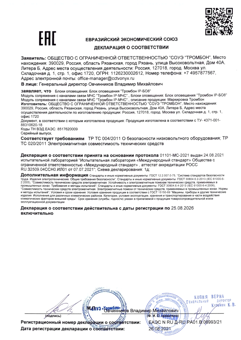 Блок оповещения «Тромбон IP-БО8» (далее Модуль) предназначен для работы в составе системы звукового вещания «Тромбон IP». Модуль предназначен для приёма тревожных сигналов от систем регистрирующих тревожные события и передачи тревожных сообщений на усилители мощности.