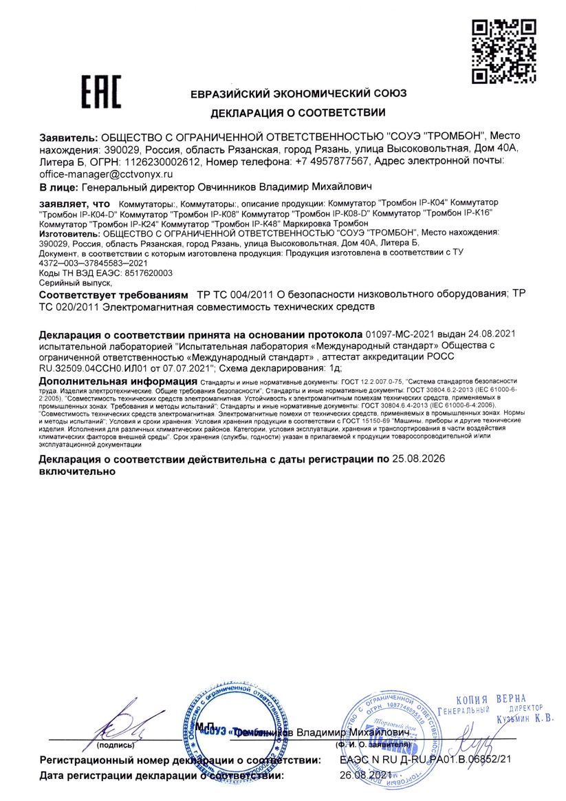Прибор предназначен для использования в системе «Тромбон IP» в качестве сетевого PoE коммутатора.