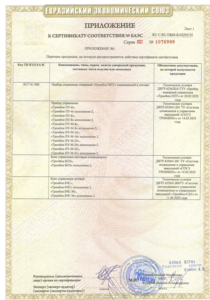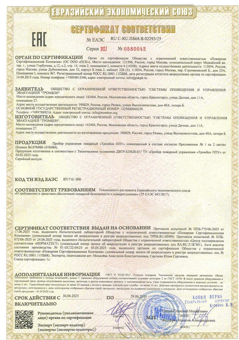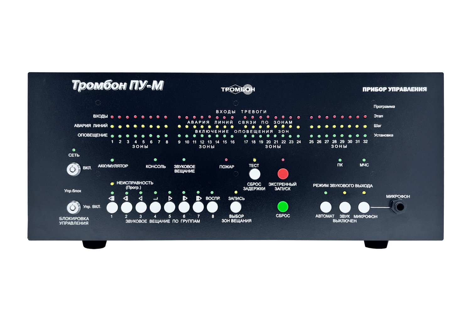 Прибор управления техническими средствами оповещения и эвакуации «Тромбон - ПУ-М» (далее в тексте – Прибор или Прибор управления) предназначен для построения системы оповещения и управления эвакуацией (СОУЭ) 1, 2, 3, 4 и 5 типов на различных объектах с количеством зон оповещения – до 8.