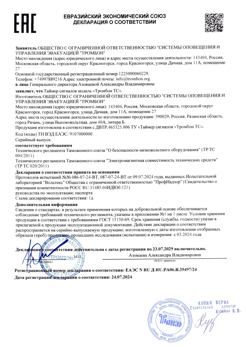 Таймер сигналов. Предназначен для проигрывания аналоговых сигналов (хранящихся на SD-карте в формате MP3) или речевых сообщений по заданному сценарию (расписанию). Работает совместно с оборудованием «Тромбон ПУ-4/4К/8/8К/М-8/М-16/М-24/М-32». Встроенный таймер (часы); до 32 зон оповещения; до 50 вариантов звуковых сигналов; 1 линейный выход (Jack 6,3 mono); 1 порт RS-485 (для связи с ПУ); 1 реле управления (COM/NO/NC; 125В/1А); 12В DC; 0,7Вт; IP20; 0…40°C. Габ.размеры: 218х105х42,5 мм. Корпус: металл; исполнение: для настенного монтажа.
