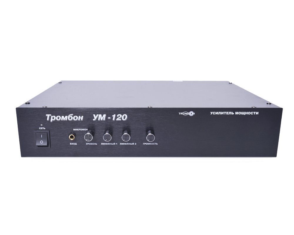 Усилитель мощности, 120 Вт. Усилитель 120 В, основное питание - ~220В AC, резервное питание- =24В DC, входов - 4, выходное напряжение 30, 100, 120 В, диапазон частот по микрофонному и линейным входам - 100-20000 Гц, по входу оповещения - 100 - 12500 Гц, габариты - 438х321х88 (2U) мм, 7,5кг
