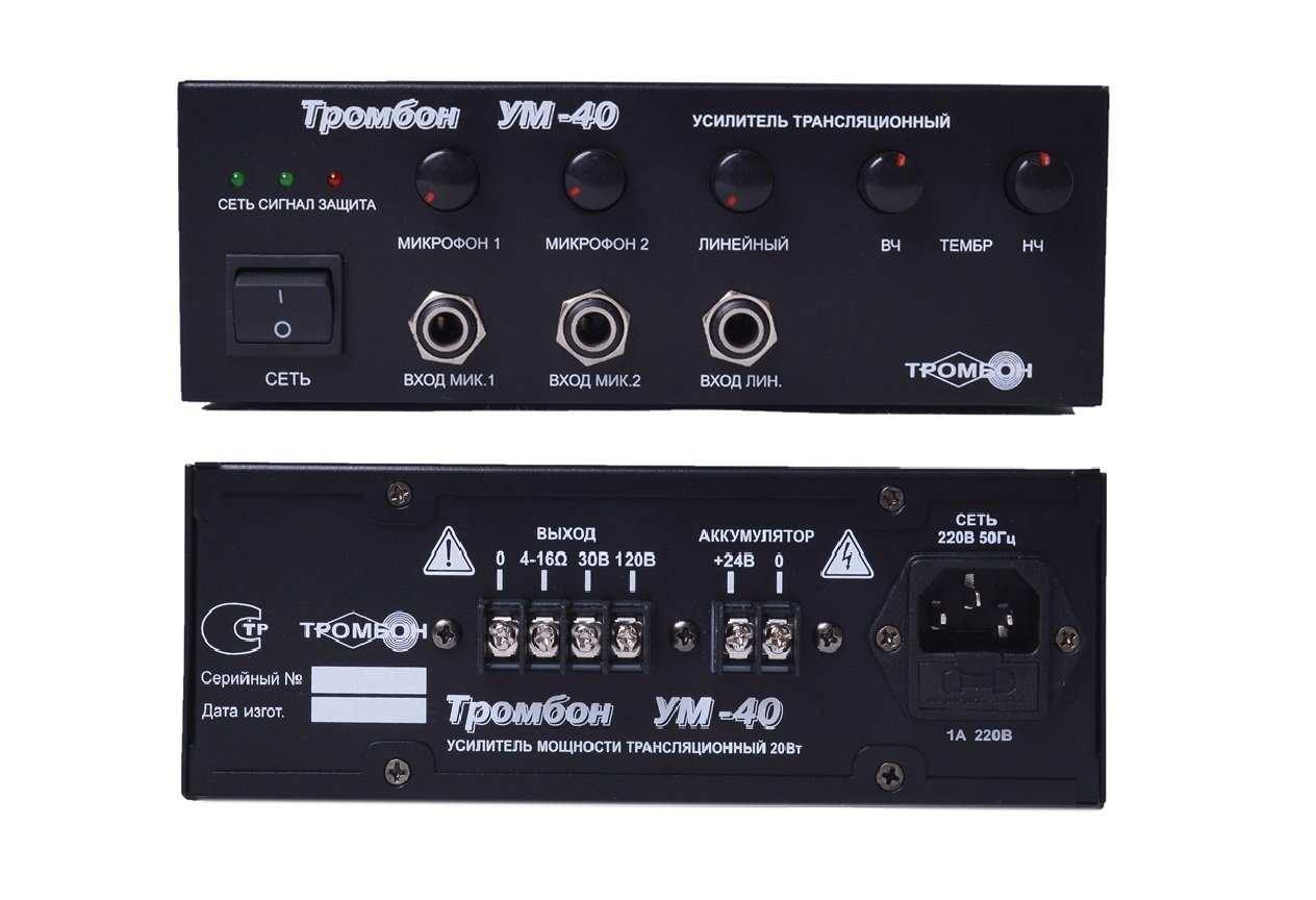 Усилитель мощности трансляционный «Тромбон - УМ4-40» предназначен для использования в составе систем оповещения людей о пожаре в зданиях и сооружениях.