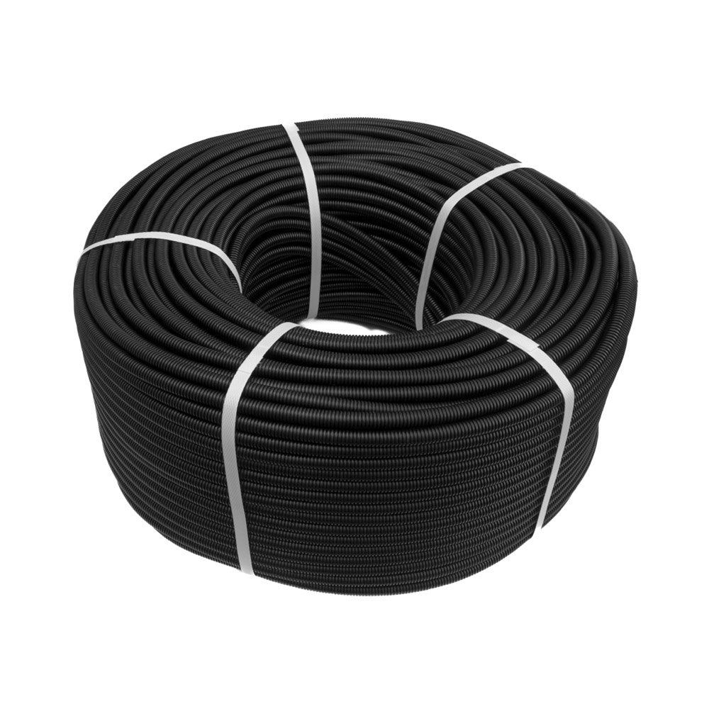 Труба гофрированная с протяжкой. Труба гофрированная ПП легкая 350 Н безгалогенная (HF) стойкая к ультрафиолету черная ; D-вн.7,0 мм, D-нар.10,0 мм, 250м