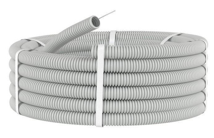 Труба гофрированная, с зондом. Труба ПП гибкая гофрированная с зондом, тяжелая, из полипропилена, D20 мм, цвет серый, бухта 100 м