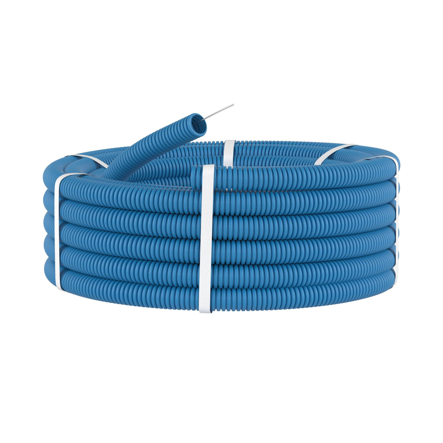 Труба ППЛ гибкая гофрированная лёгкая, с протяжкой. Труба ППЛ гибкая легкая с протяжкой D=20мм, цвет синий, уп=100м, полипропилен