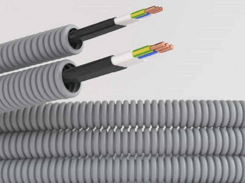 Труба гофрированная с кабелем. Труба гофрированная (ПВХ) + кабель ВВГ-Пнг(А)-LS 3х2,5 мм² Конкорд; Ø-номин. 20 мм, IP55, t-раб.-25…+60°С, цвет серый. Бухта 100 м.