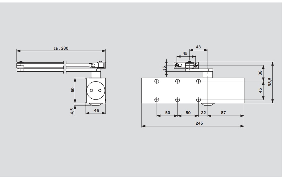 ● Рассчитан на любые типы дверей шириной до 1400 мм и весом до 160 кг.● Адаптирован для монтажа на металлический и PVC профиль без дополнительной монтажной пластины.● Крепёжные винты скрыты под съемной крышкой.● Поставляется в комплекте с рычагом и крепежом.● Максимальный угол открывания 180 градусов.● При выполнении сезонных регулировок температурный диапазон расширен от -30° до +50°.● Соответствует стандарту EN 1154.● Дверной доводчик dormakaba TS89-F сертифицирован в СИСТЕМЕ СЕРТИФИКАЦИИ ГОСТ Р ГОССТАНДАРТА РОССИИ.