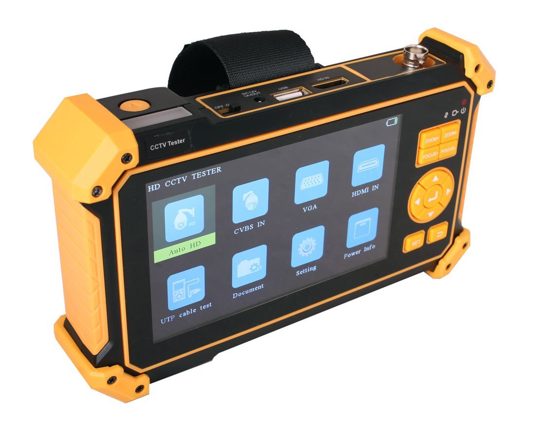 Многофункциональный тестовый видеомонитор для аналогового видеонаблюдения. Универсальный монитор-тестер AHD/CVI/TVI/CVBS-видеосистем; возможности: поддержка AHD/CVI/TVI 2160P; PTZ - управление камерой; проверка UTP-кабеля; источник питания DC12В/1A, монитор данных RS485, видео вход, аудио вход; разъемы: BNC, клеммы(RS485), RJ45, jack 3.5мм вход, разъем DC 12В/1A выход, USB выход, USB micro (5В) вход; характеристики: разрешение экрана - 5" 800x480; батарея Li-ion 3,7В 5200мАч; размеры : 184x110х41мм; рабочая температура от -10°С до 50°С.
