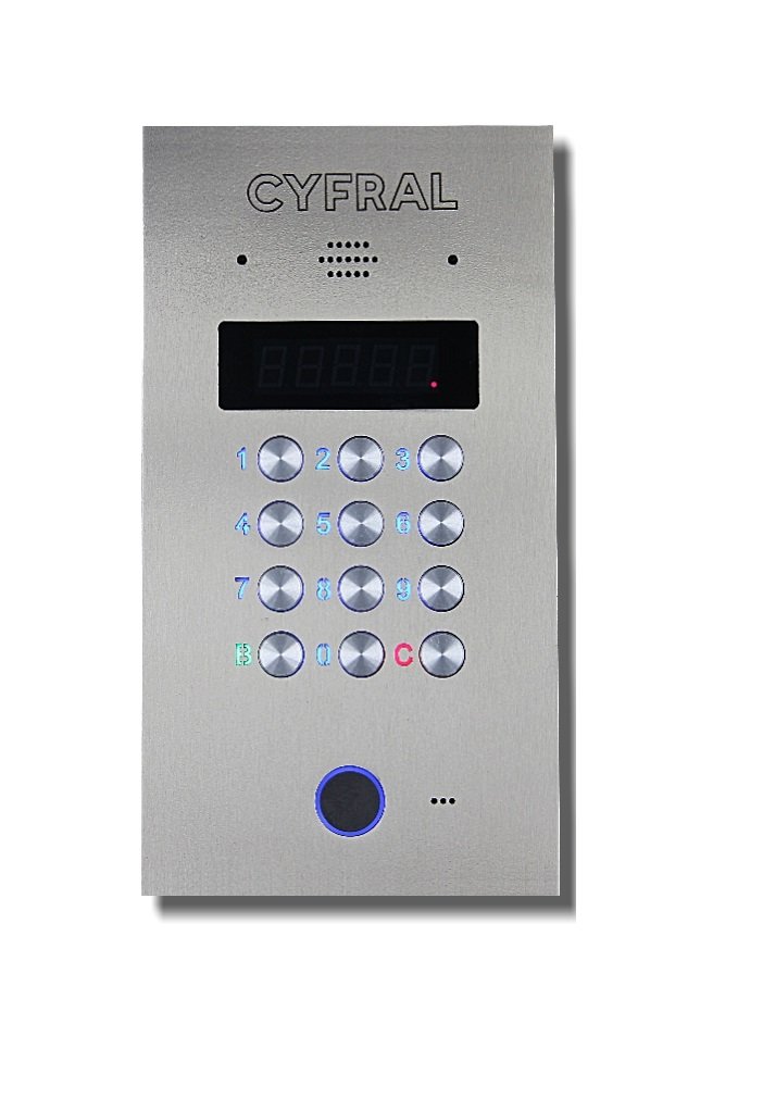 Вызывная панель видеодомофона. Врезная вызывная панель координатного видеодомофона. Лицевая панель блока вызова из нержавеющей стали. Максимальное количество абонентов до 600(при использовании 6 коммутаторов ЦИФРАЛ КМГ-100). 4 знака индивидуального кода; 4 знака общего кода; 3 степени идентификации; 10 000 кодов; 1500 ключей Mifare. Встроенный считыватель Mifare с криптозащитой; встроенная видеокамера IP 2 Мп, DC12V±10%, 90 мА, объектив 2,8 мм, выход RJ 45; видеокамера аналоговая 800 твл; PAL 1/3''; угол обзора: по горизонтали 70°, по вертикали 52°; дистанция наилучшего качества: 1,6 м. Возможность подключения мониторов видеодомофонов (через модуль сопряжения) и аудиотрубок. Блок вызова с индексом «VC IP» выпускается с двумя модулями видеокамер: аналоговой и цифровой IP камерой. -40…+50°C; 260х140х35,5 мм.