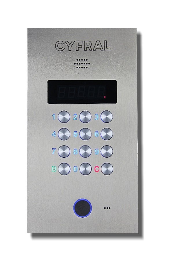Вызывная панель аудиодомофона. Врезная вызывная панель координатного аудиодомофона. Лицевая панель блока вызова из нержавеющей стали. Максимальное количество абонентов до 600(при использовании 6 коммутаторов ЦИФРАЛ КМГ-100). 4 знака индивидуального кода; 4 знака общего кода; 3 степени идентификации; 10 000 кодов; 1500 ключей Mifare. Встроенный считыватель Mifare с криптозащитой. -40…+50°C; 260х140х35,5 мм.