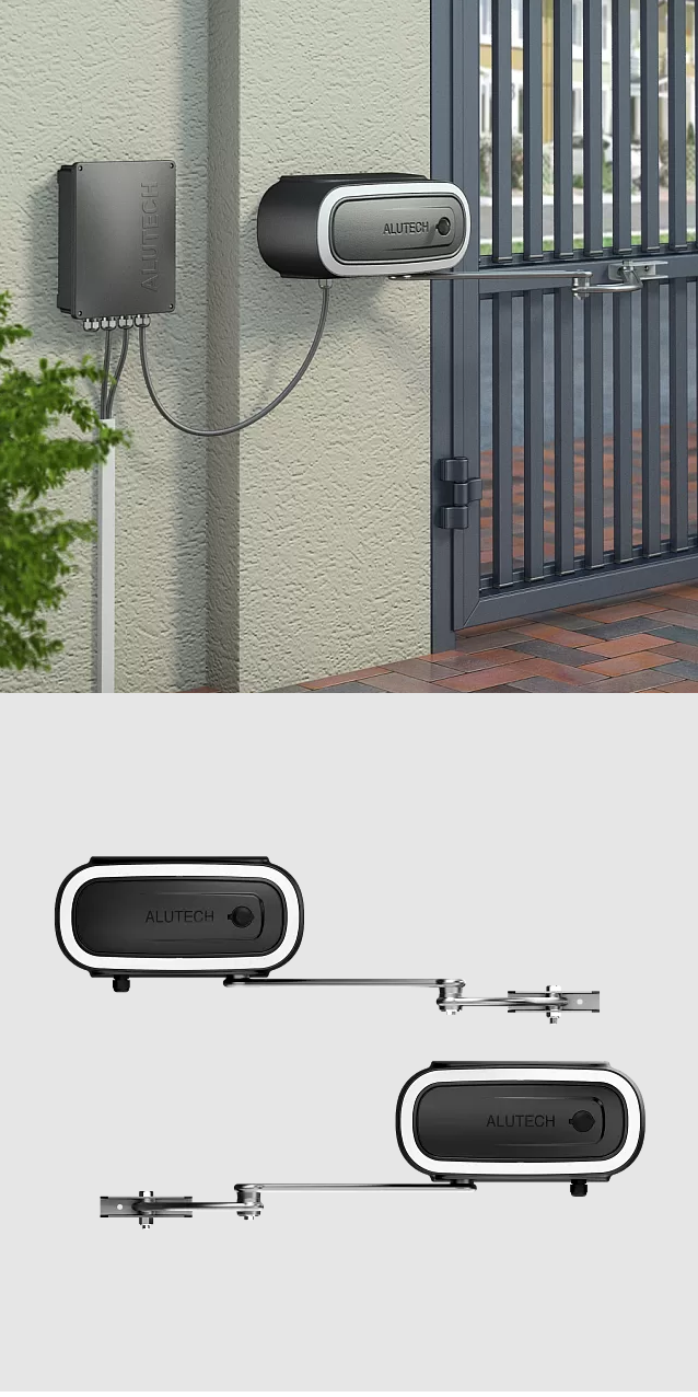 Комплект предназначен для использования в составе одностворчатых и двухстворчатых распашных ворот жилых/частных и промышленных/коммерческих зон.