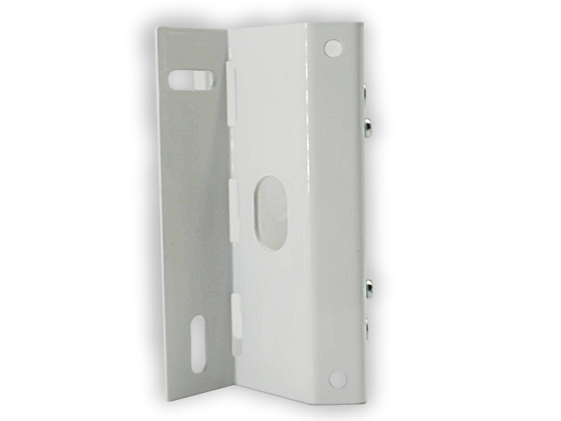 Угловой кронштейн. Угловой кронштейн для камер видеонаблюдения, крепление на угловые поверхности, материал: оцинкованная сталь, толщина металла: 2 мм, размеры: 144х138х65 мм, масса: 0,56 кг, нагрузка: до 10 кг, диаметр мачты: от 76 мм, ширина крепежной ленты: до 24 мм, совместимые коробки: JB-100, JB-05, JB-01, PB-01, комплектация: кронштейн, винты М4 (4 шт.), особенности: резьбовые клепки для монтажа коробок PB-01.