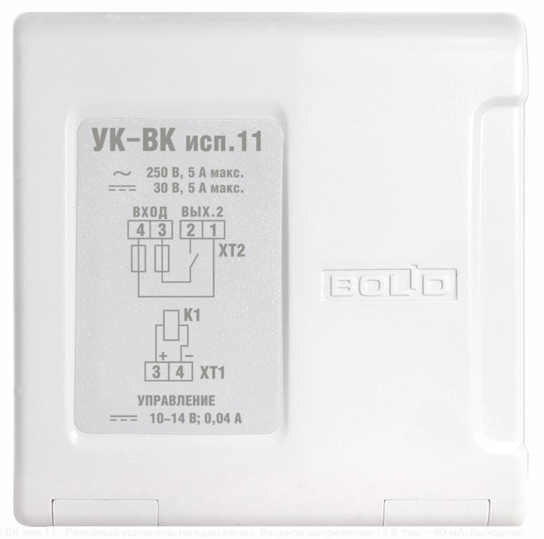 Устройство коммутационное УК-ВК в системах охранной сигнализации и контроля доступом предназначено для коммутации исполнительных устройств (ламп, сирен, видеокамер, электромагнитных замков и т.д.) в сети переменного тока номинальным напряжением 220 В или в цепях постоянного тока до 30 В путём замыкания, размыкания и переключения контактов реле. В системах пожарной сигнализации устройство предназначен для передачи стартового импульса на прибор пожарный управления.