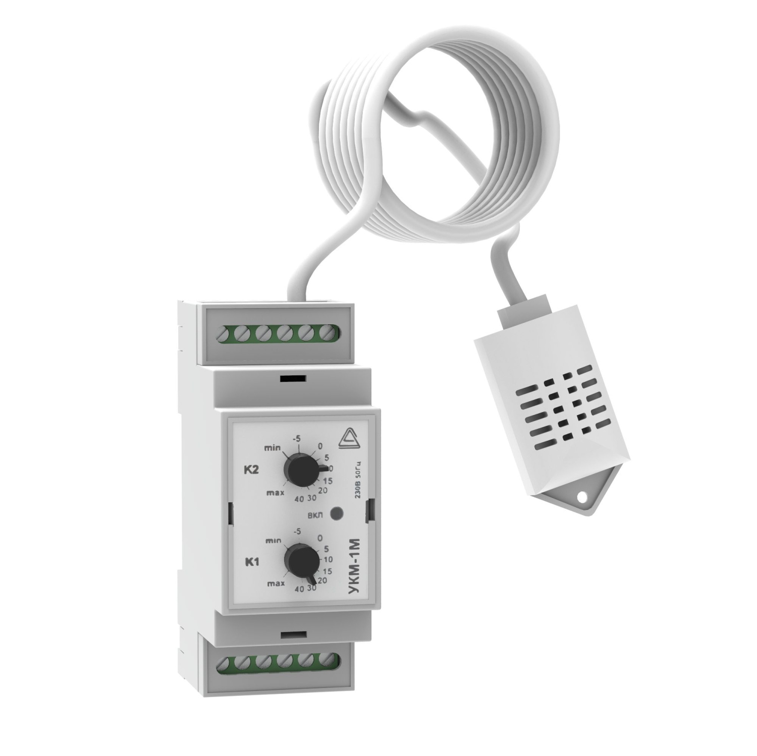 Электронный термостат. Сдвоенный электронный термостат для контроля обогрева и отключения оборудования шкафа с выносным датчиком; t-регул.-35…+70°C; U-ном.230 В, I-ном.4 А; t-раб.-55…+75°C, 36х70х90 мм. Крепление на DIN-рейку.