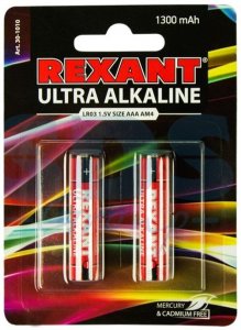 Ультра алкалиновая батарейка AAA/LR03 1,5 V 2 шт. блистер REXANT (30-1010)