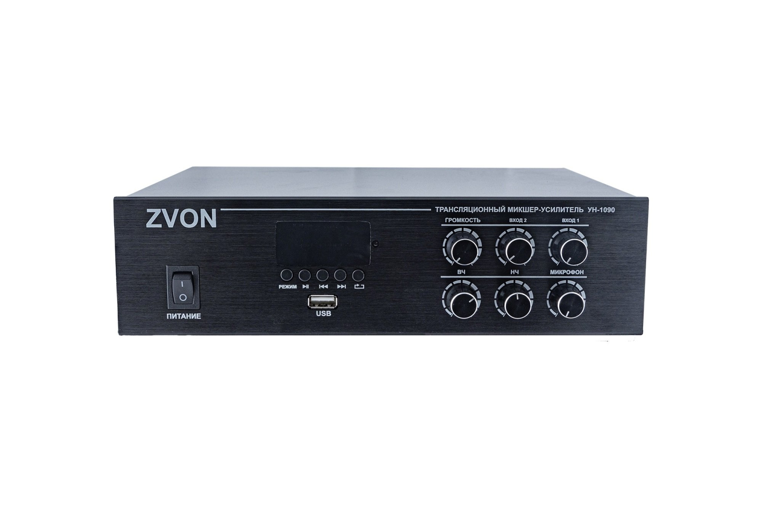 Усилитель трансляционный. Настольный трансляционный микшер-усилитель с медиа-плеером USB/Bluetooth/FM радио; 90Вт; 100В/4-16 Ом; микрофонный вход; 2 линейных входа. Питание: AC 110-220В/DС 24В. Габ.разм.: 250х220х65мм. Корпус: металл; цвет: чёрный.