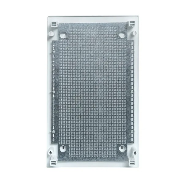 Щит слаботочный навесной Unix. Щит слаботочный навесной пластиковый, сплошная белая дверца; 1 монтажная перфорированная панель, IP41, t-раб.-25…+60°C, габ.размеры 485х287х112 мм. Цвет белый.