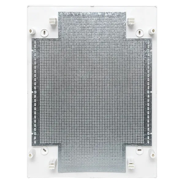 Щит слаботочный навесной Unix. Щит слаботочный навесной пластиковый, сплошная белая дверца; 1 монтажная перфорированная панель, IP41, t-раб.-25…+60°C, габ.размеры 526х396х112 мм. Цвет белый.