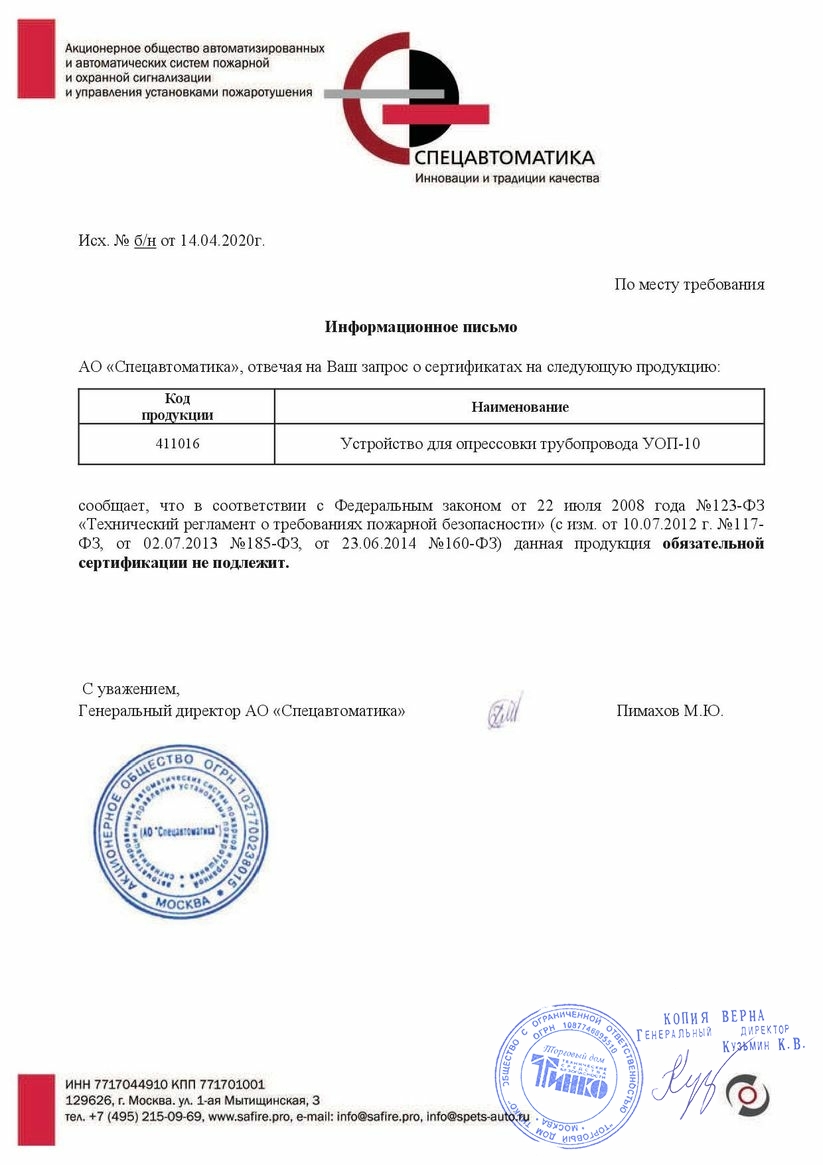 Устройство для опрессовки трубопровода. Устройство для опрессовки трубопровода УОП-10